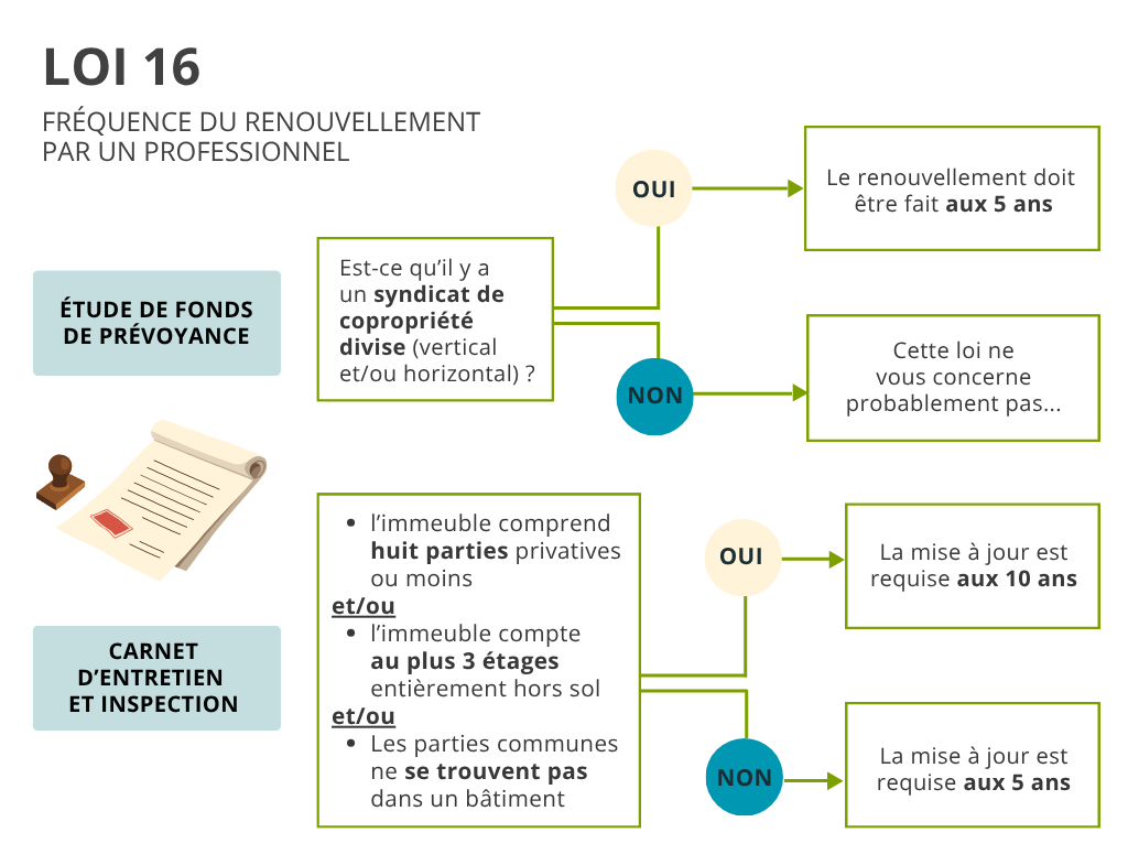 Si vous éprouvé toujours de la difficulté à savoir comment vous conformer aux exigences de la loi 16 en ce qui concerne le carnet d’entretien pour copropriété, n’hésitez pas à nous contacter. Nos spécialistes sont là pour vous fournir les informations et services pour y parvenir aussi rapidement que facilement.